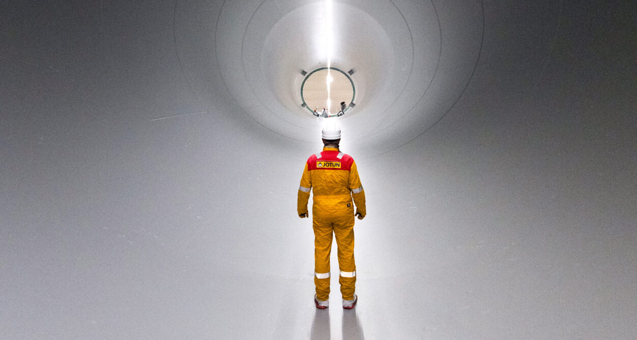 Jotun utvikler overflatebeskyttelse for ekstreme miljøer. Vi dokumenterte arbeidet med overflatebehandling av pæler til offshore vindmøller – konstruksjoner i enorme dimensjoner, der kvalitet og beskyttelse er kritisk.
